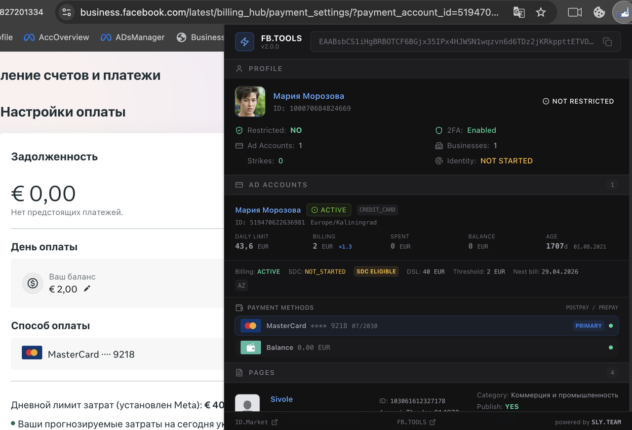 Комплектация: Cookies, Token EAAB, Email (почта может быть не рабочая), 2FA.